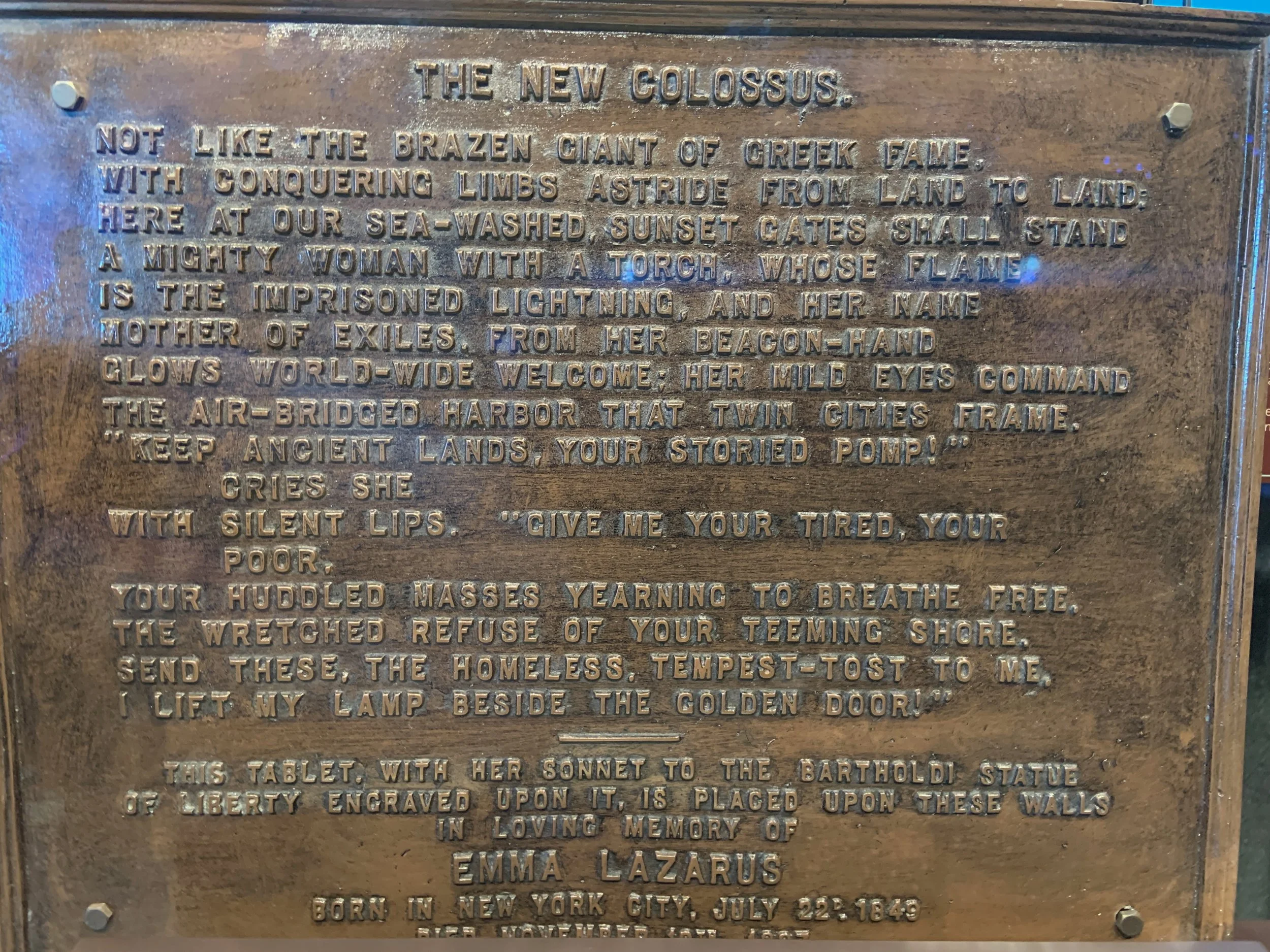 Here at our sea-washed, sunset gates shall stand, / A mighty woman with a torch, whose flame